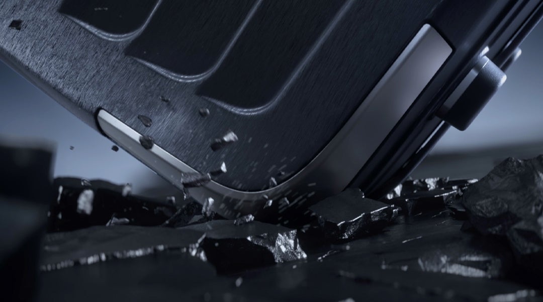 ・堅牢なシェルデザインに、マットな質感のコーナープロテクションとレザートリムのハンドルを組み合わせた端正な佇まい。