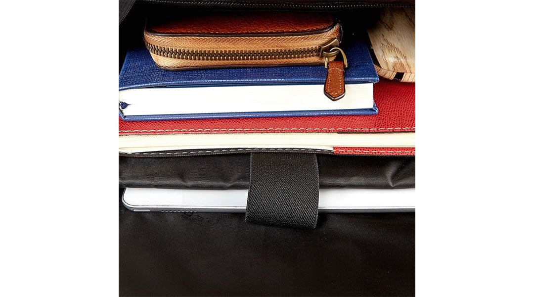 ・ 薄マチながら、メイン収納部には15.6インチサイズのPCが収納できるポケットを備えている。
