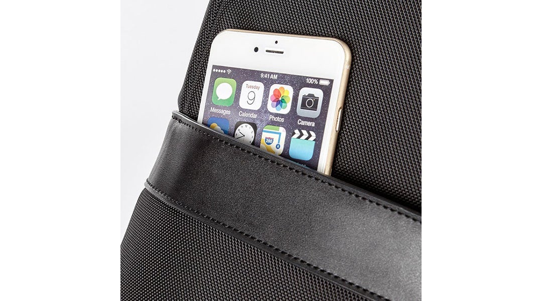 ・ スマートフォンなど頻繁に取り出すものを収納するのに便利なファスナー付きのフロントポケットがあり、内装生地に抗菌加工がほどこされている。